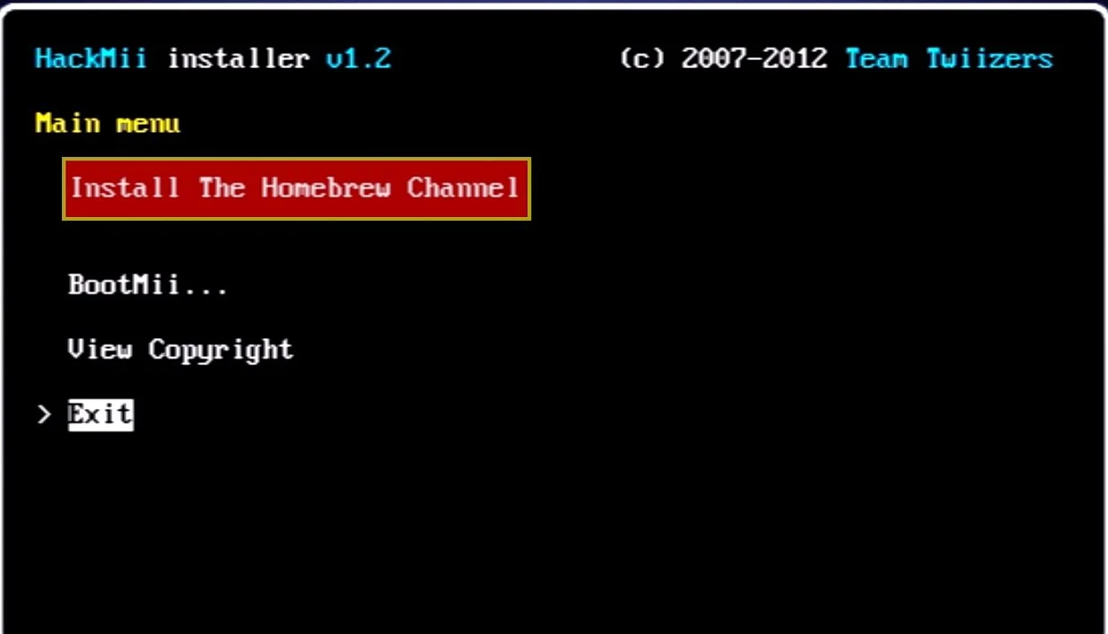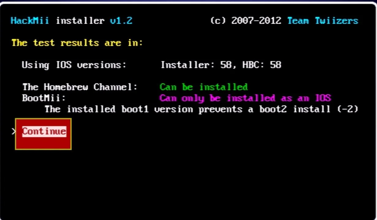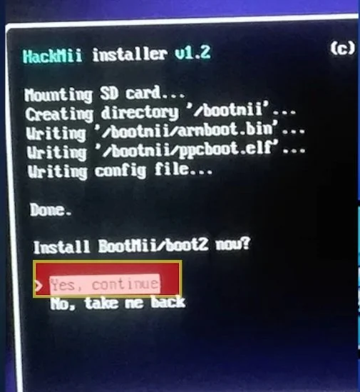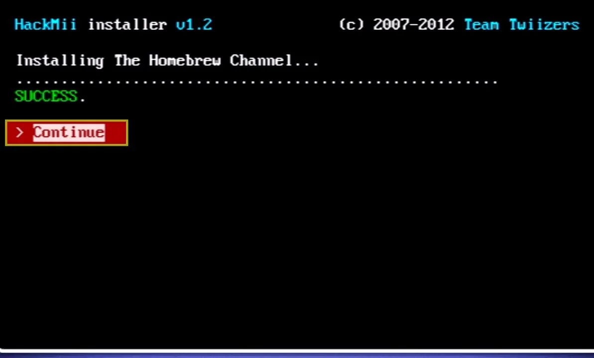 Select “install the homebrew channel” and “yes, continue”