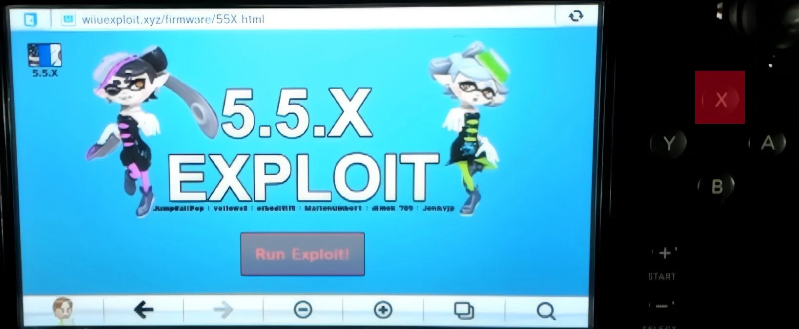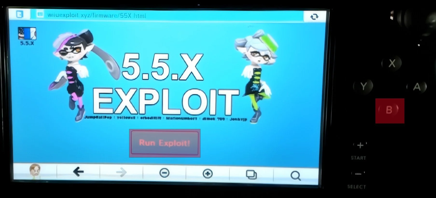 This will bring you to the site. Once the page loads, press the Run Exploit! Button and hold the B button on the gamepad.