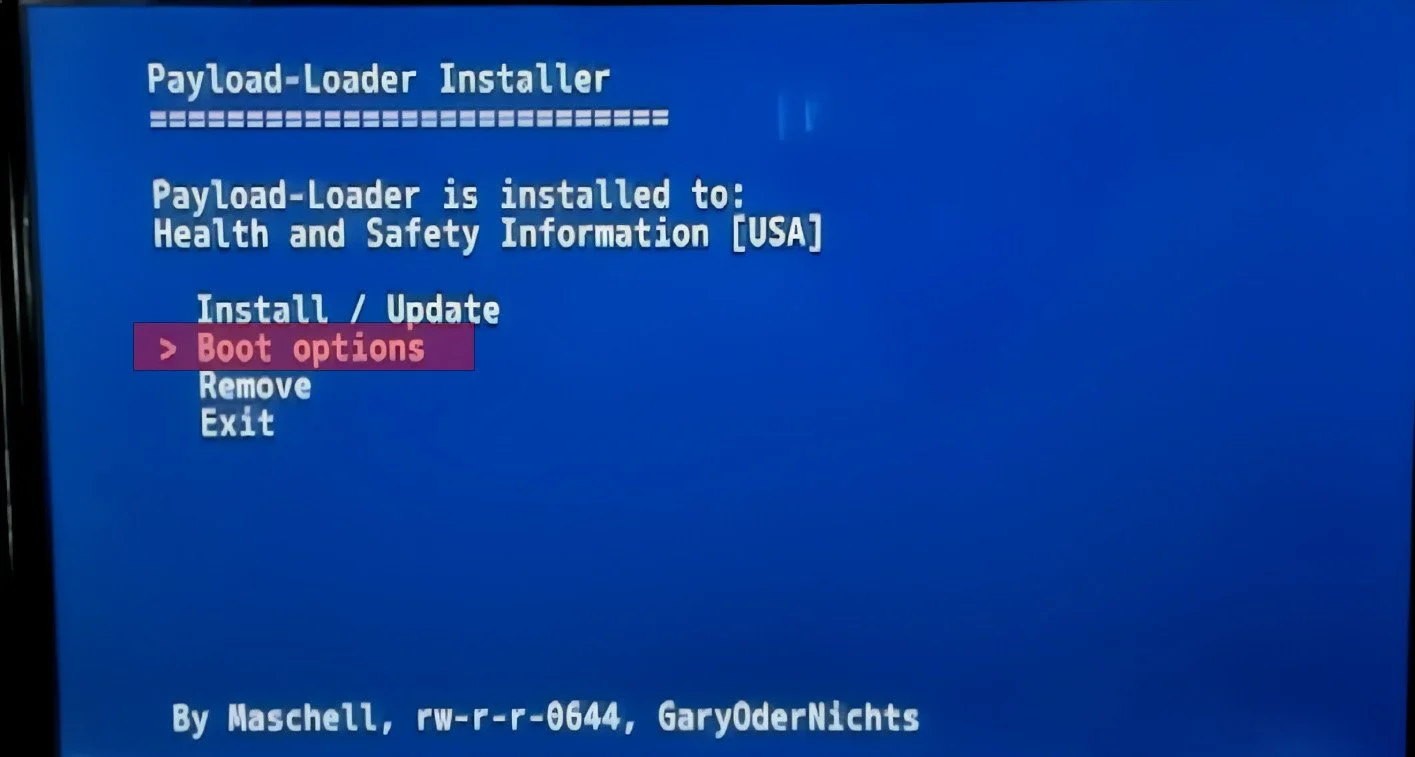 You’ll be asked if you are sure you want to install the payload-loader. Use the dpad to select install and press A.