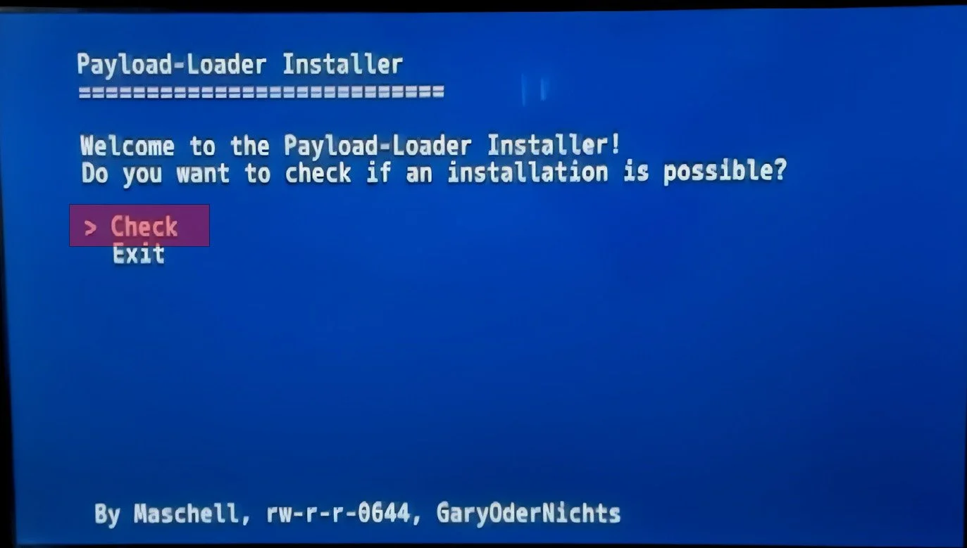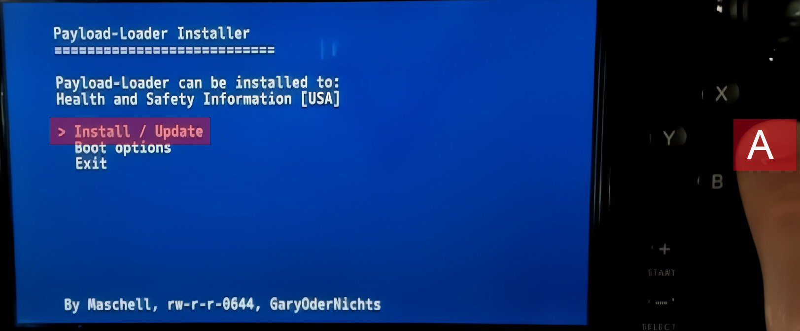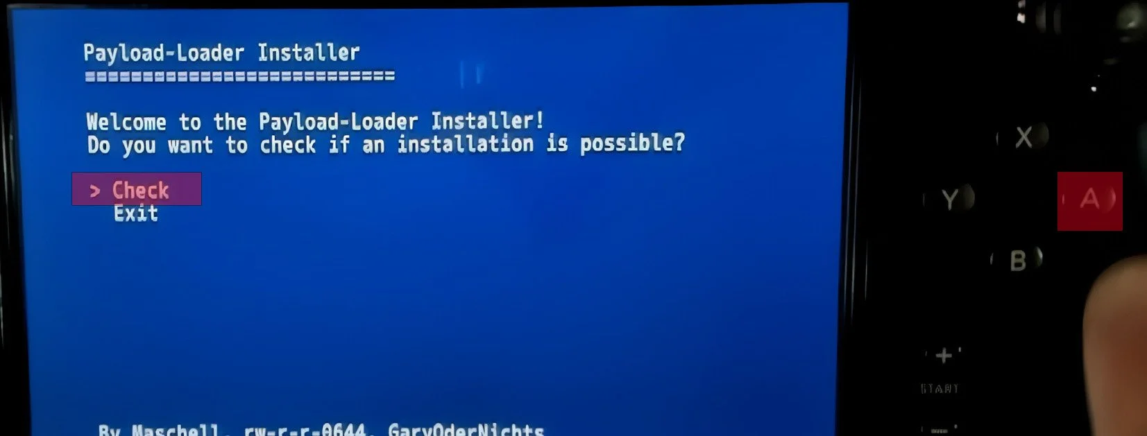 Press the A button to check if you can install the payloadloader.