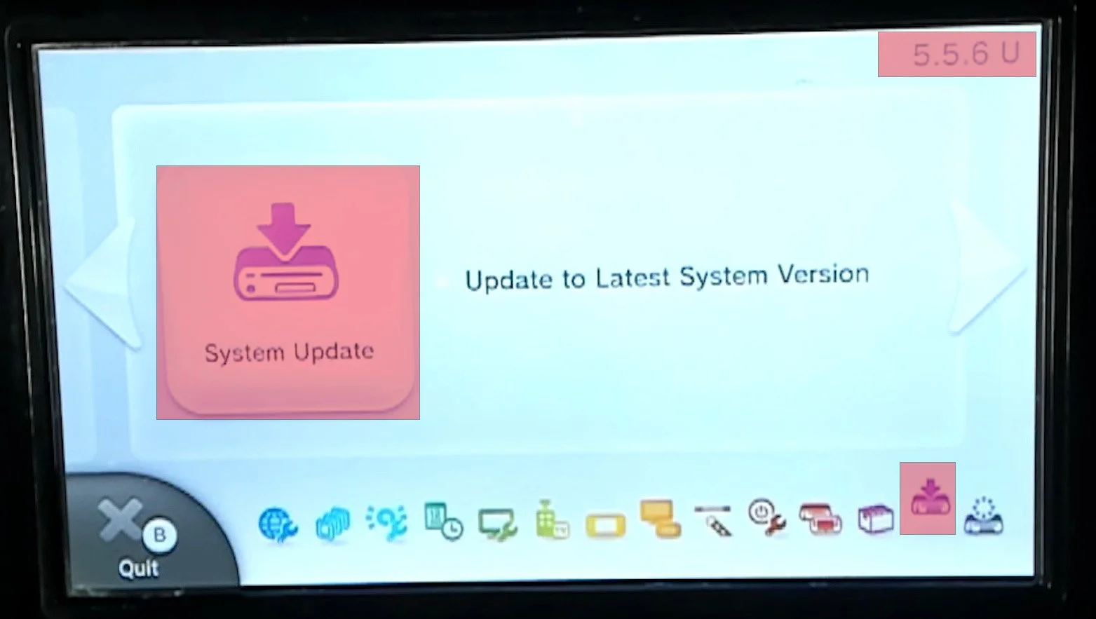 If your version is lower than this, you will need to update the firmware by selecting the second last icon in the bottom of the gamepad, and choose “System Update” and go through the prompts to update to the latest official firmware.