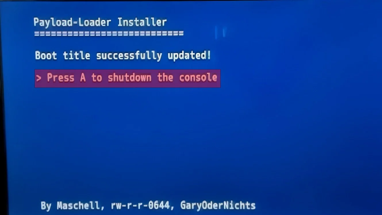 You will be asked if you want to switch the boot title. Press A to select switch to payloadloader.
