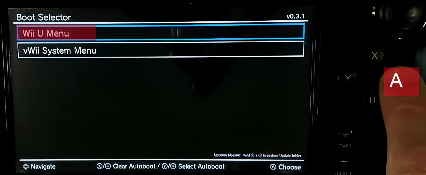 On the boot selector screen, press A on Wii U menu.